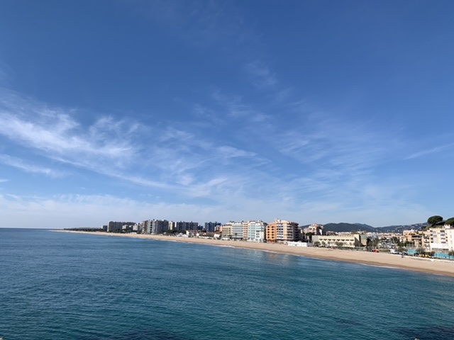 Na het ontbijt trokken we een jasje aan en verkenden de winkelstraatjes van Blanes. Al snel was de jas te warm en zetten we ons in t-shirt in het zonnetje. We beklommen de grote rots in de zee, om zo een mooi uitzicht op Blanes te krijgen.