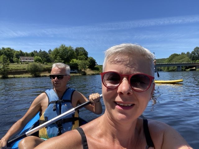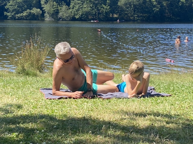 Het was weer lekker warm vandaag, dus ideaal om op en in het water te vertoeven. Na het suppen trokken we naar het strandje en zwommen tussen de vissen in het meer dat eigenlijk een traag stromende rivier is.