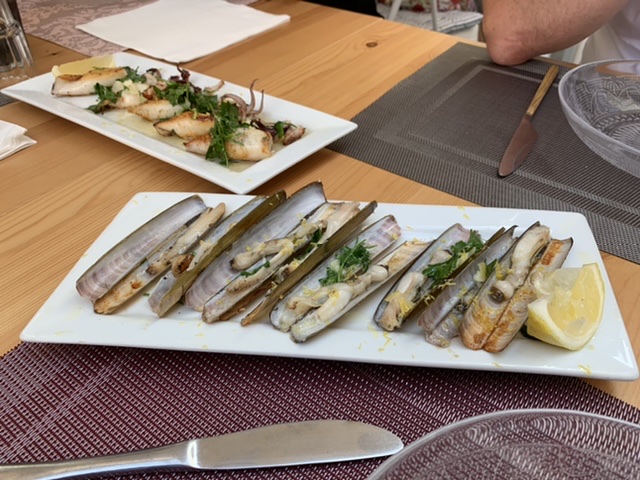 Vanmiddag aten we wat stokbrood en gingen een beetje zwemmen op de camping. Daarna een douche en een wandeling naar het oude centrum van Rosas. Daar wandelden we langs de winkeltjes en gingen lekkere tapas eten in het gezellige restaurantje Lalola.