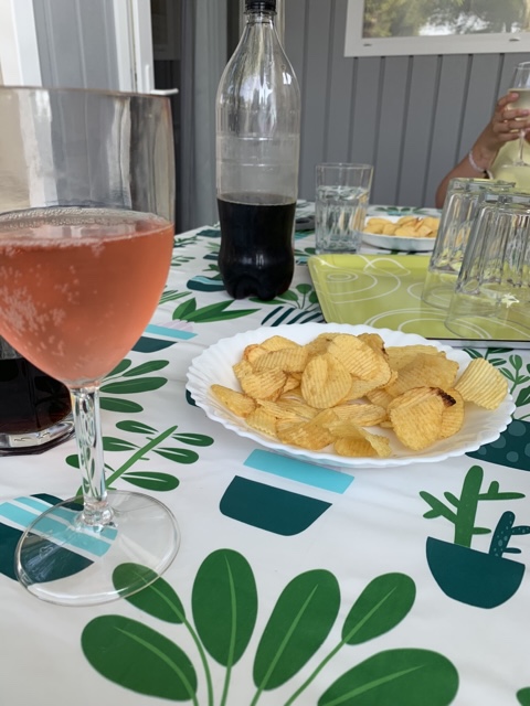 Na het eten drinken we nog een glaasje, haalden een ijsje aan de receptie en wandelden eens over de mooie en drukbezette camping.