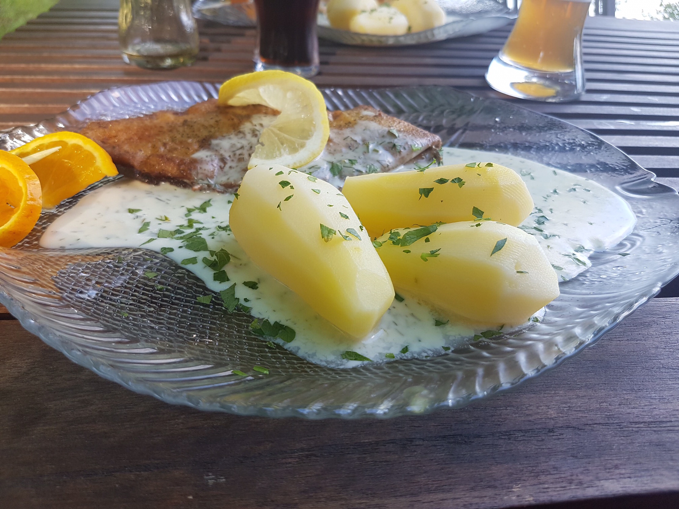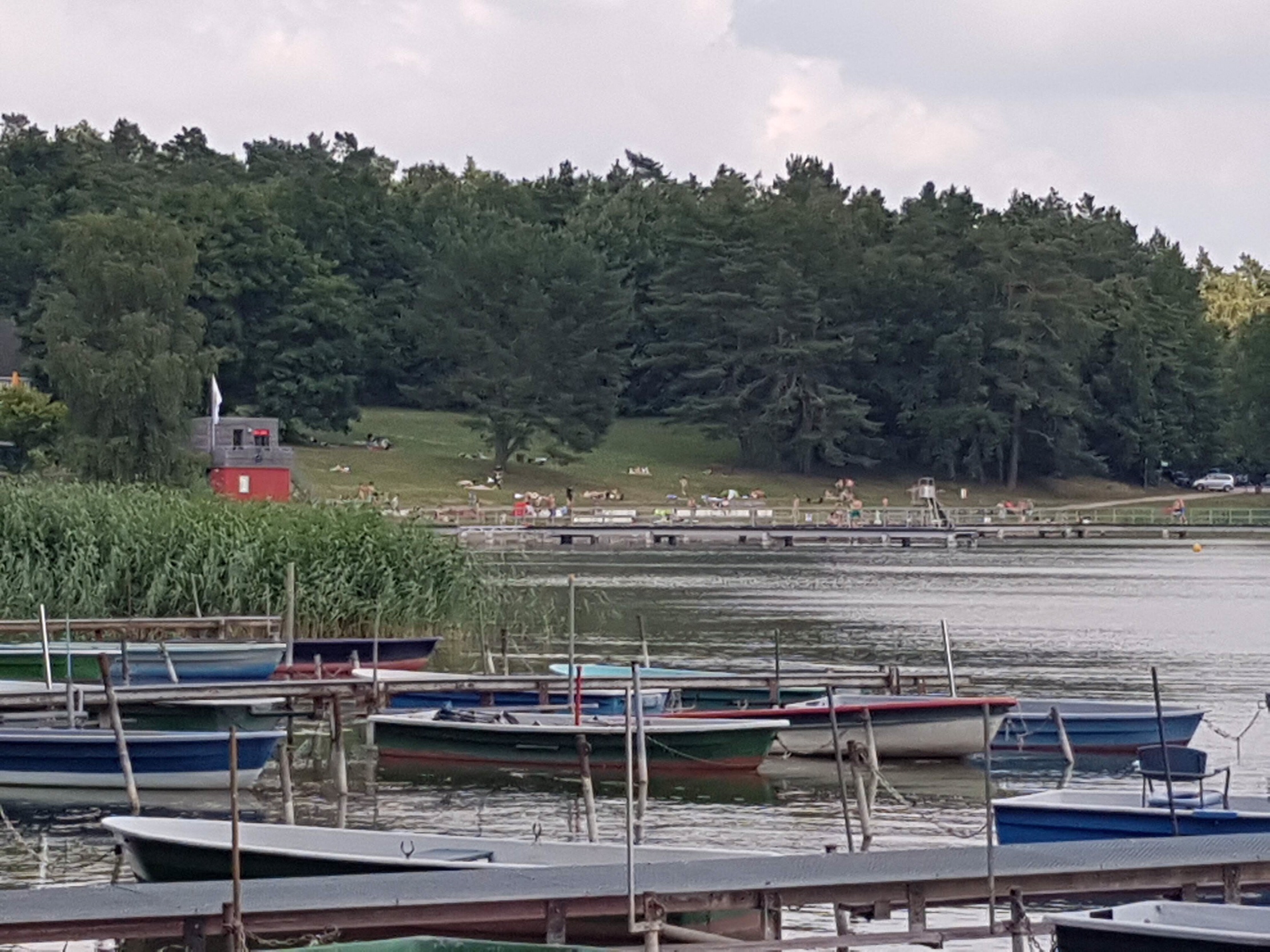 Het weer aan het meer was te mooi en er was nog te veel te doen, dus bleven we twee dagen in Neukloster. We aten een lekker Oostzee visje aan de oever van het meer, fietsten rond het meer door het bos en gingen waterfietsen op het meer.