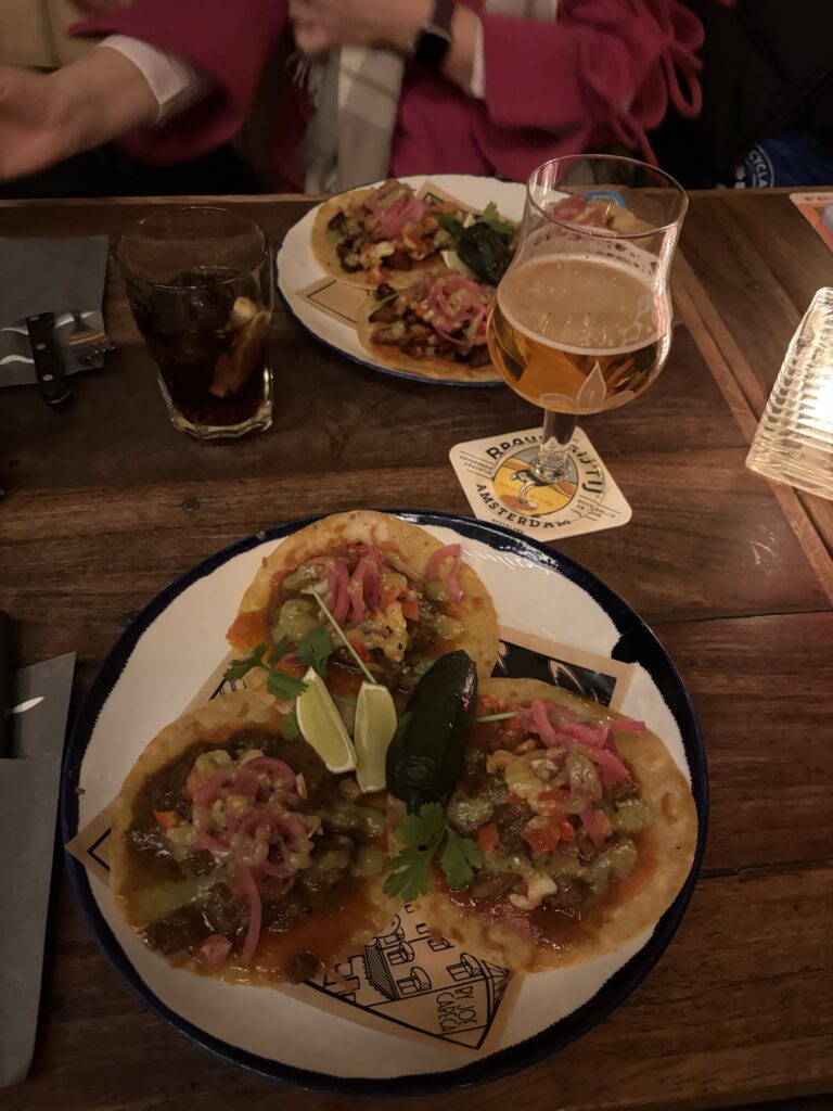 Rond 17.00 uur pakten we de tram naar het hart van Den Haag, waar we neerstreken op de gezellige Grote Markt. Deze sfeervolle plek, omringd door cafés en restaurants, is het kloppende hart van de stad. Ons diner bij “Hoender en Hop” was een ervaring op zich: pittige taco’s die onze smaakpapillen wakker schudden, gecombineerd met een perfect biertje om het vuur te blussen. Wist je trouwens dat Den Haag een rijke biergeschiedenis heeft? De stad telt talloze lokale brouwerijen die hun ambacht met trots laten proeven.