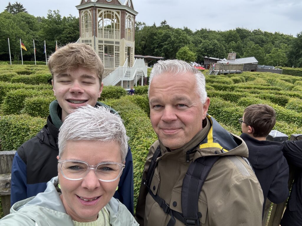Vandaag stond het drielandenpunt in Vaals op het programma. Het Drielandenpunt in Vaals is een unieke plek waar je met één stap tussen Nederland, België en Duitsland kunt wisselen! Klim naar de top van de uitkijktoren voor een panoramisch uitzicht over de drie landen, dwaal door het doolhof of verken de groene wandel- en fietsroutes in de heuvels van de Vaalserberg. Na een actieve dag kun je op een terrasje genieten van streekgerechten, zoals een verse Luikse wafel of een typisch Duitse Bratwurst.