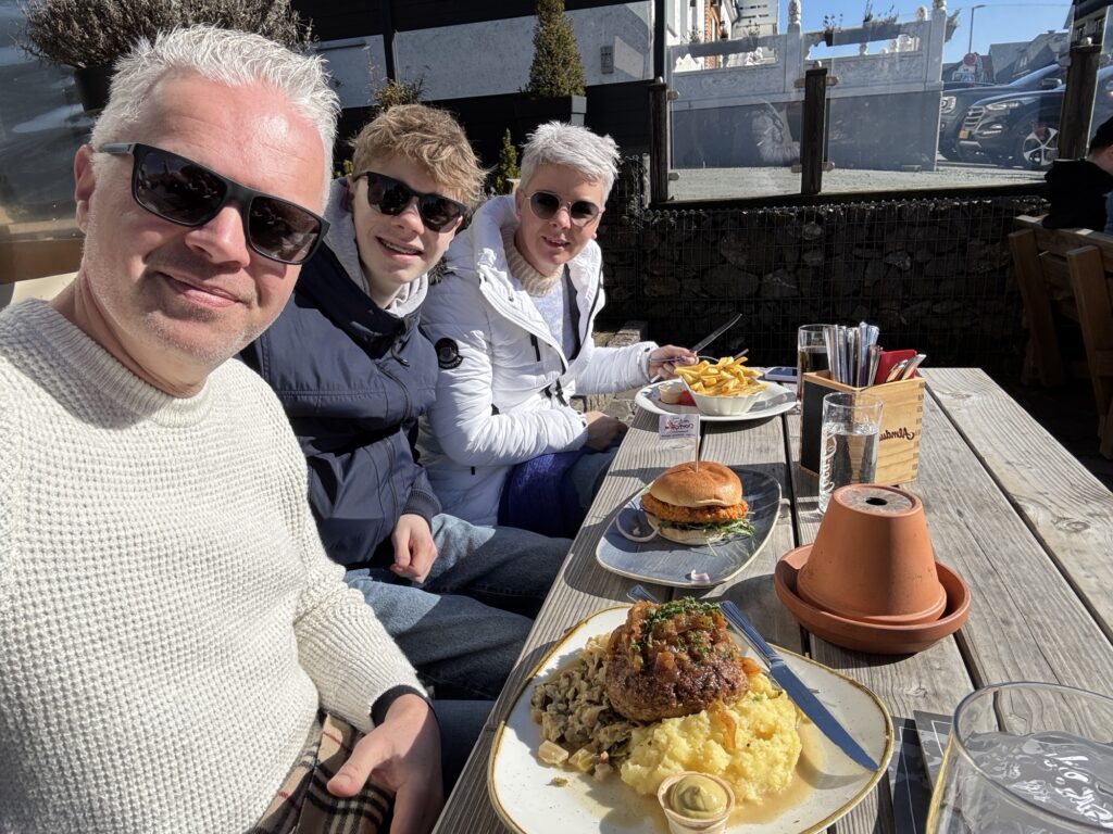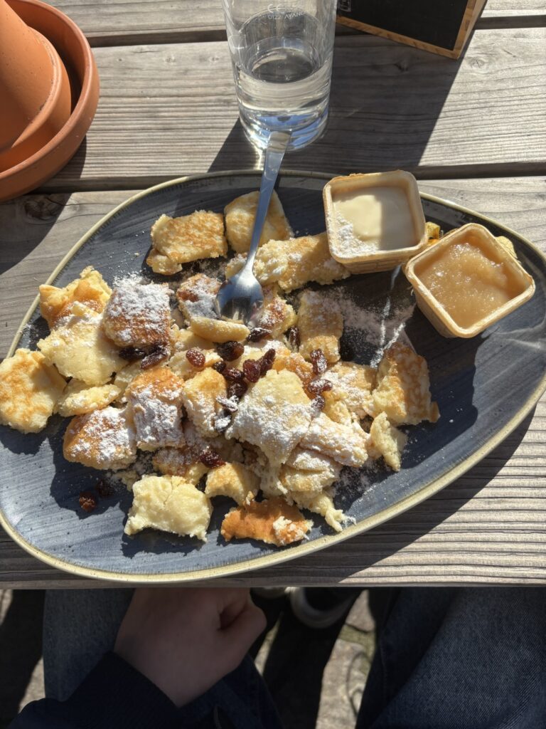 ‘s middags aten we bij DorfsAlm een redelijk zware lunch (Oostenrijkse kost voor mama en papa, kipburger voor Ferre) die zoonlief nog bekroonde met een flinke portie Kaiserschmarren.