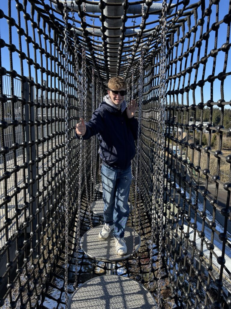 We wandelden terug naar de skipiste waar mama en Ferre de Coaster namen (een rodelbaan zonder sneeuw 😁) en papa even relaxte op het gras.