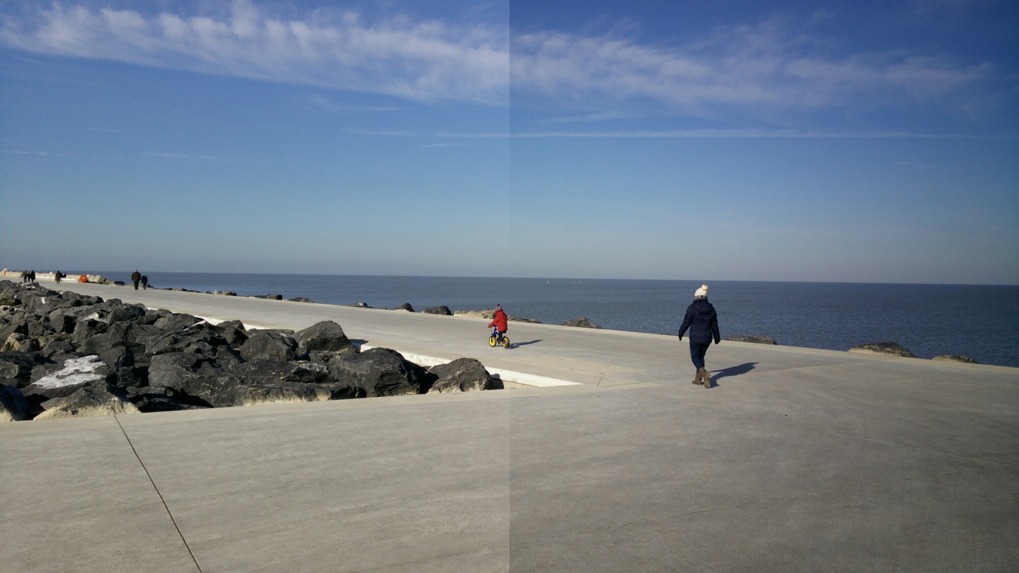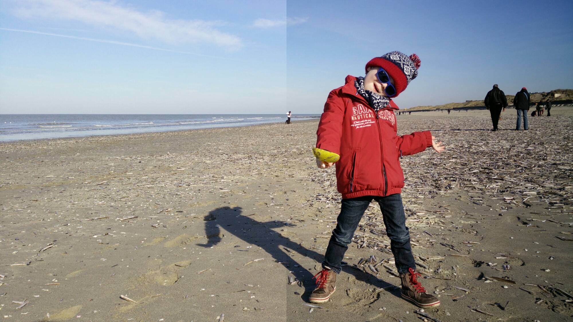 Zoals je op de foto kan zien stonden we onder een stralende zon te genieten van de zee. Na het middageten klommen we over de duinen naar het strand waar we grote schelpen raapten en een mooie wandeling maakten over een soort pier of golfbreker.