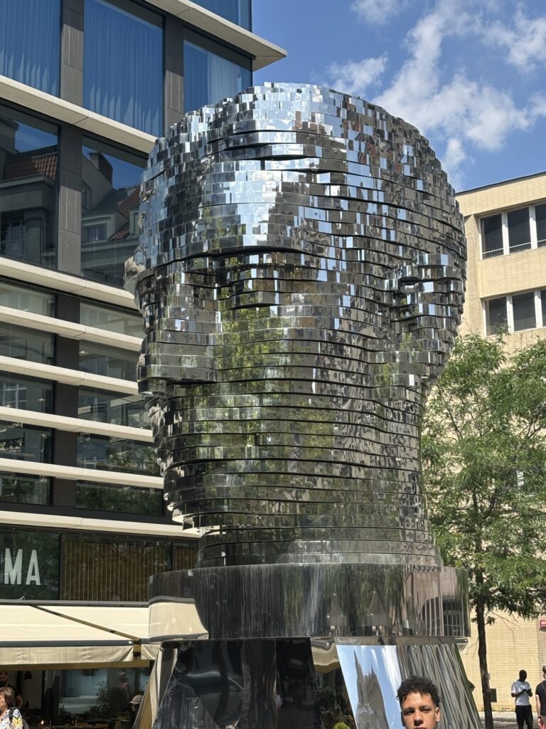 Kafka rotating head was onze eerste stop. Een kunstwerk dat gemaakt is uit roterende metalen schijven. Leuk!