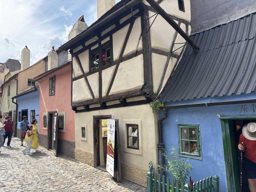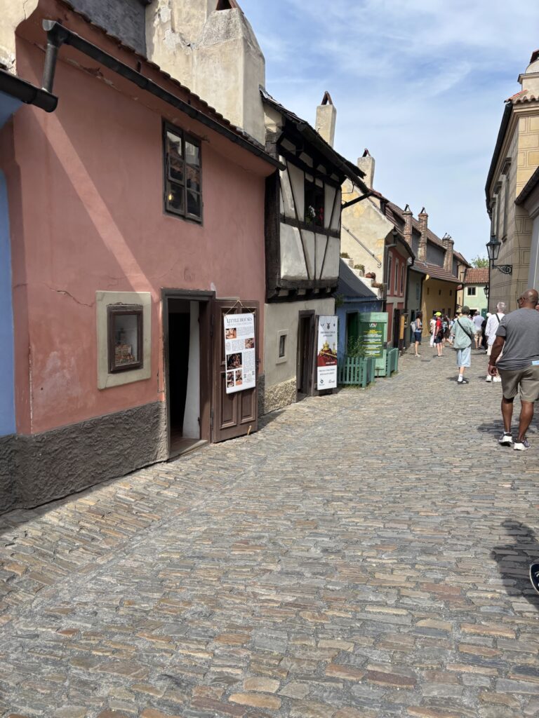Daarna begon de klim naar het paleis met het gouden straatje, haar basiliek en haar kathedraal. Het Gouden Straatje (soms ook Gouden Steegje, Tsjechisch: Zlatá ulička u Daliborky) is een smal straatje aan de binnenzijde van de noordelijke muur van de Praagse burcht in de Tsjechische hoofdstad Praag. Het eeuwenoude straatje is een van de grootste toeristische trekpleisters van de stad.