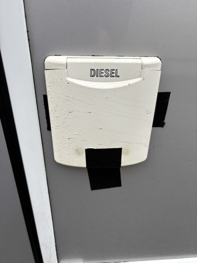 Papa wandelde naar de dichtstbijzijnde geldautomaat, want voor de camperplaats in Billund zouden we cash geld nodig hebben.