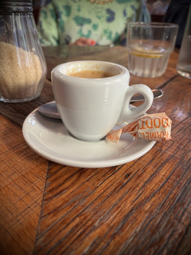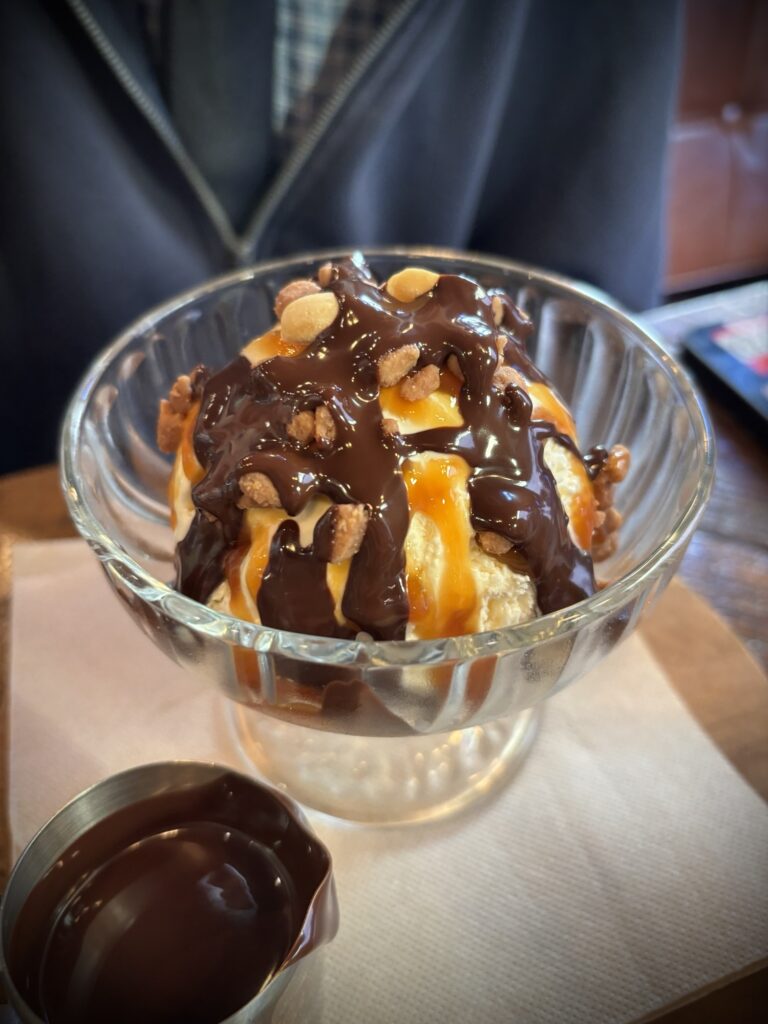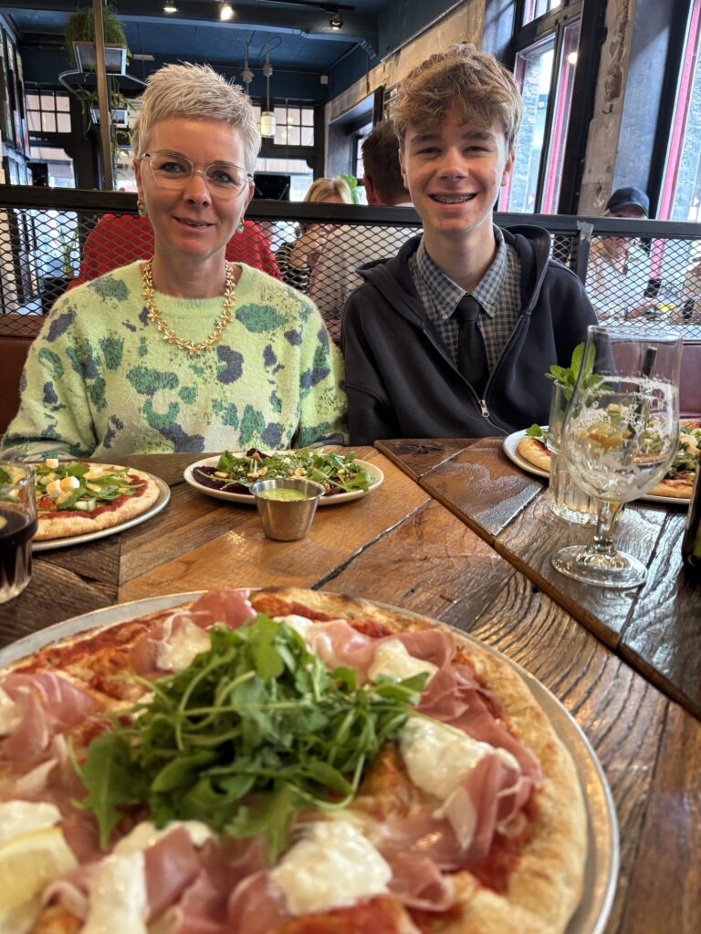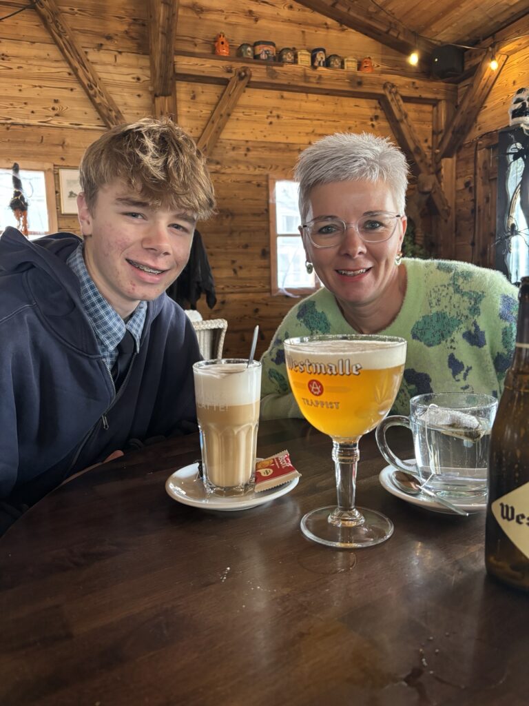 Een half uurtje later stonden we in het centrum van Knokke. We wandelden langs de mooie winkels en mama en Ferre vulden hun garderobe aan met enkele mooie kledingstukken. We aten lunch in “De Cambridge”, een brasserie op de dijk die al bestaat sinds 1927! Het eten was zéér lekker en zeker niet overdreven duur.