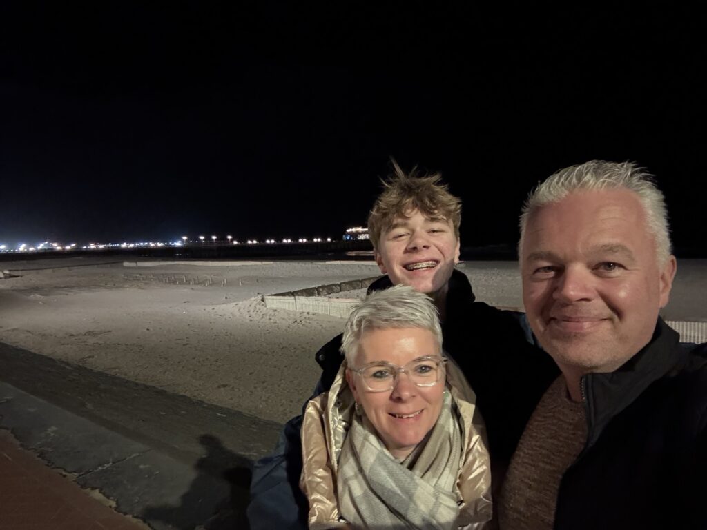 Ilse haalde verse croissantjes voor het ontbijt en rond 10u namen we de tram naar Knokke. Het is rustig aan zee, dus ook op de tram was het heerlijk rustig.