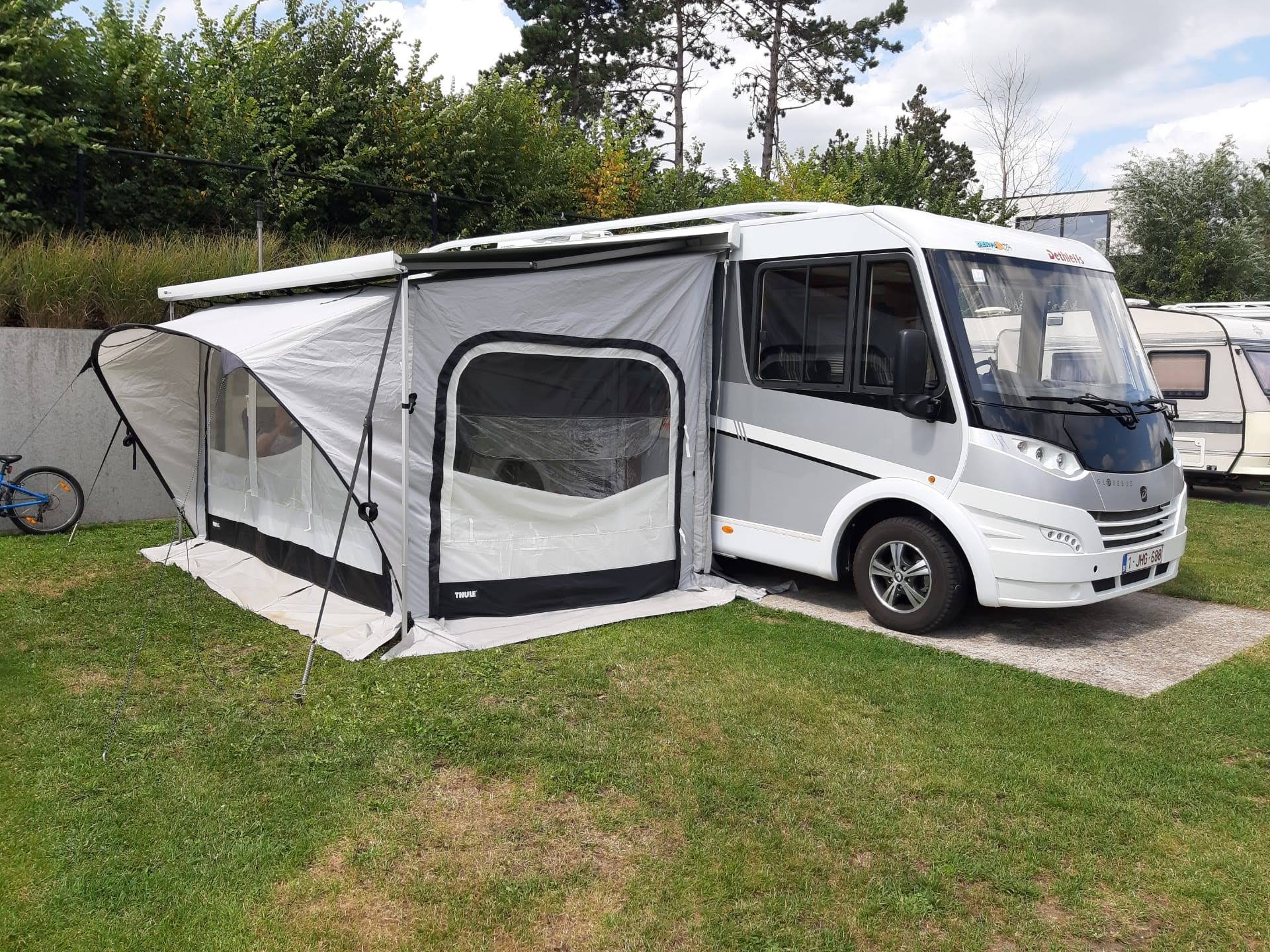 Het grootste avontuur op deze dag was het opzetten van de voortent, die bij de aankoop van de camper inbegrepen was. De 15 minuten die het volgens de vorige eigenaar duurde om ze op te zetten, draaide uit op 1u en 15 minuten. Maar ze stond er!