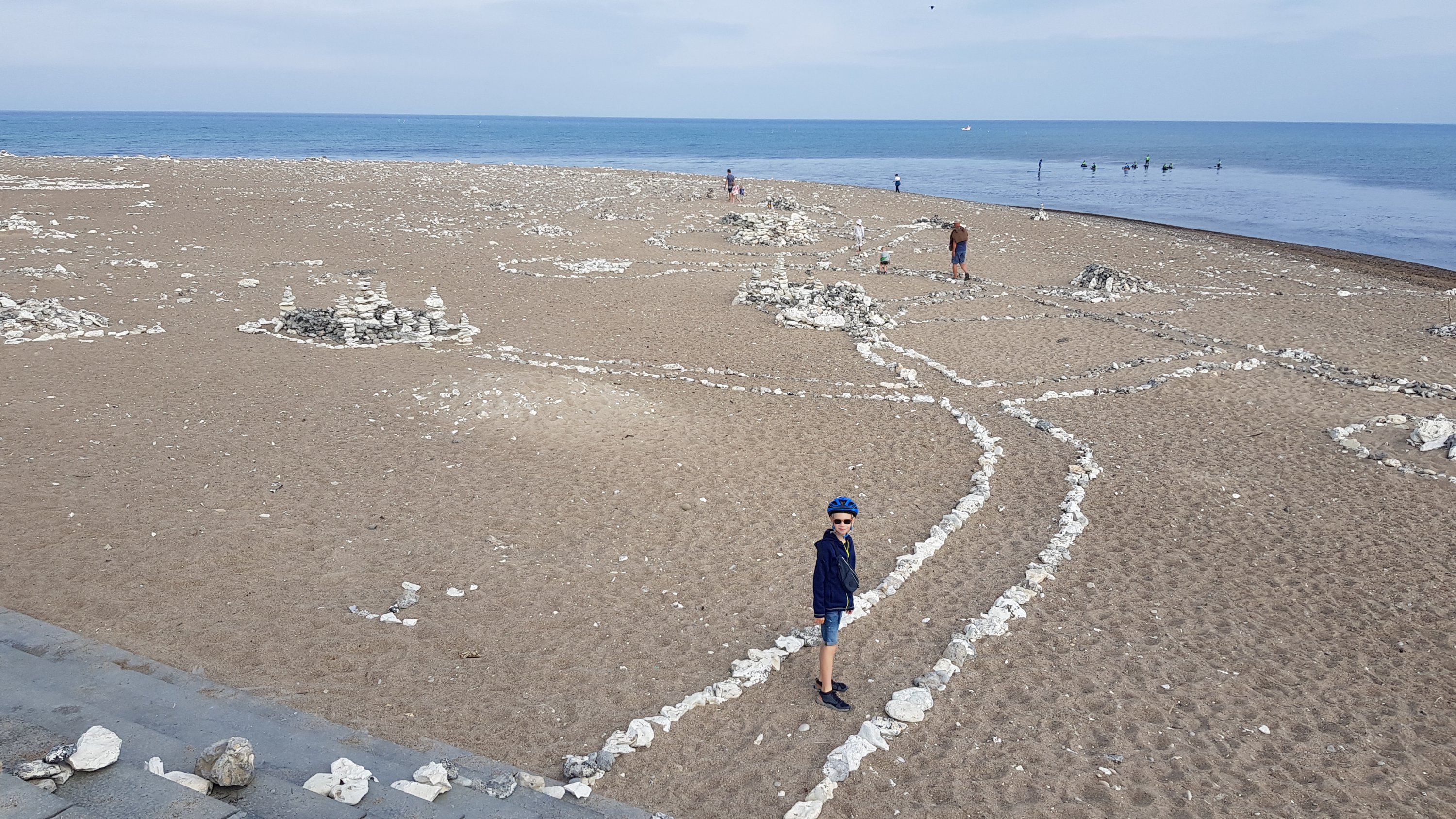 Voormiddag fietsten we naar het dorpje, aten een hapje op een terras (en er was Erdinger) en wandelden met de voetjes in het water over het mooie, grotendeels verlaten strand.