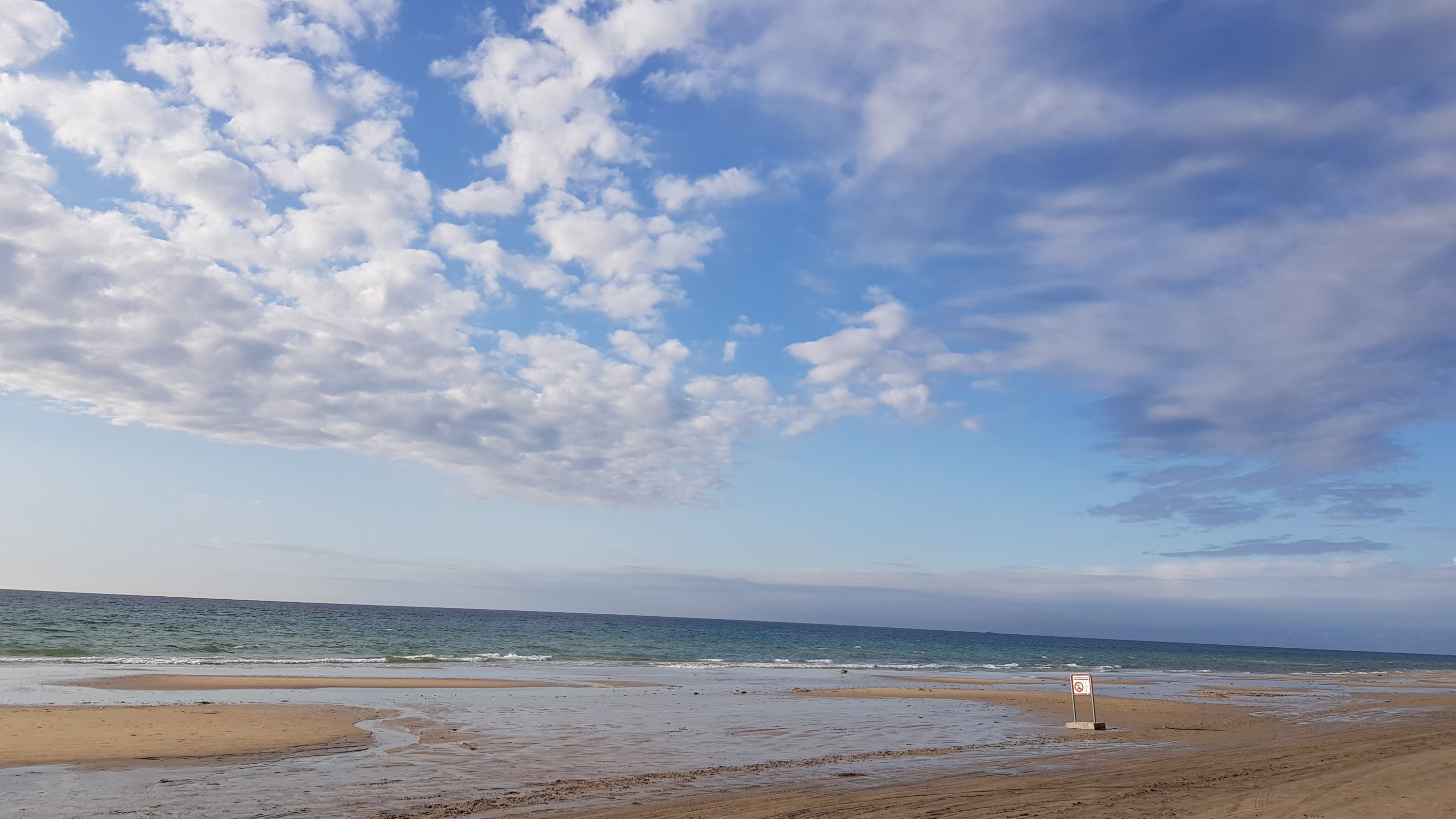 Op donderdag zou het mooi weer worden, dus we dachten naar het strand te gaan om de surfers te bekijken. Helaas pindakaas: mooi weer maar geen zuchtje wind, dus een heel vlakke zee zonder golven, dus niks te surfen.