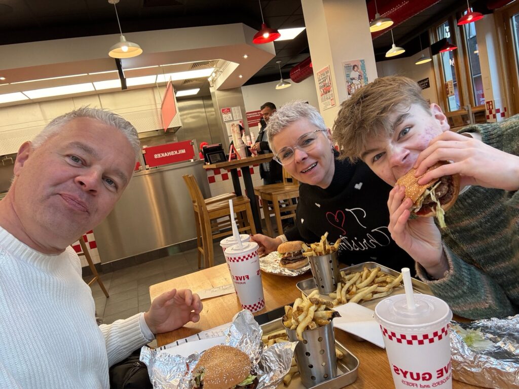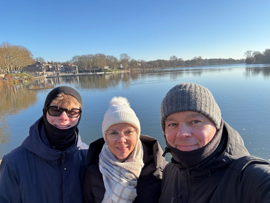 Rond 12u30 wandelden we naar het centrum langs het mooie Aa meer. Heel veel Duitsers waren er aan het wandelen, vermoedelijk omdat ongeveer alles dicht was op deze tweede kerstdag. De eerste geopende horeca zaak was Five Guys, dus we aten een lekkere hamburger met heerlijke verse frieten. Maar het blijft fastfood natuurlijk.