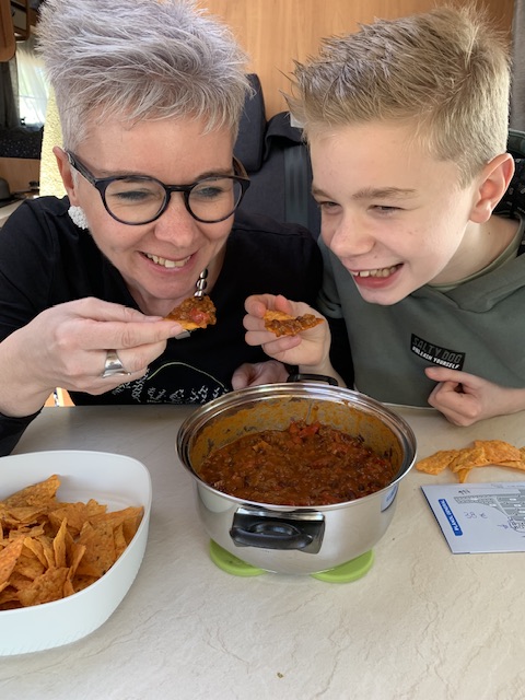 De huisgemaakte en meegebrachte chili con carne smaakte heerlijk met nachos en daarna genoten we van een welverdiende siësta.