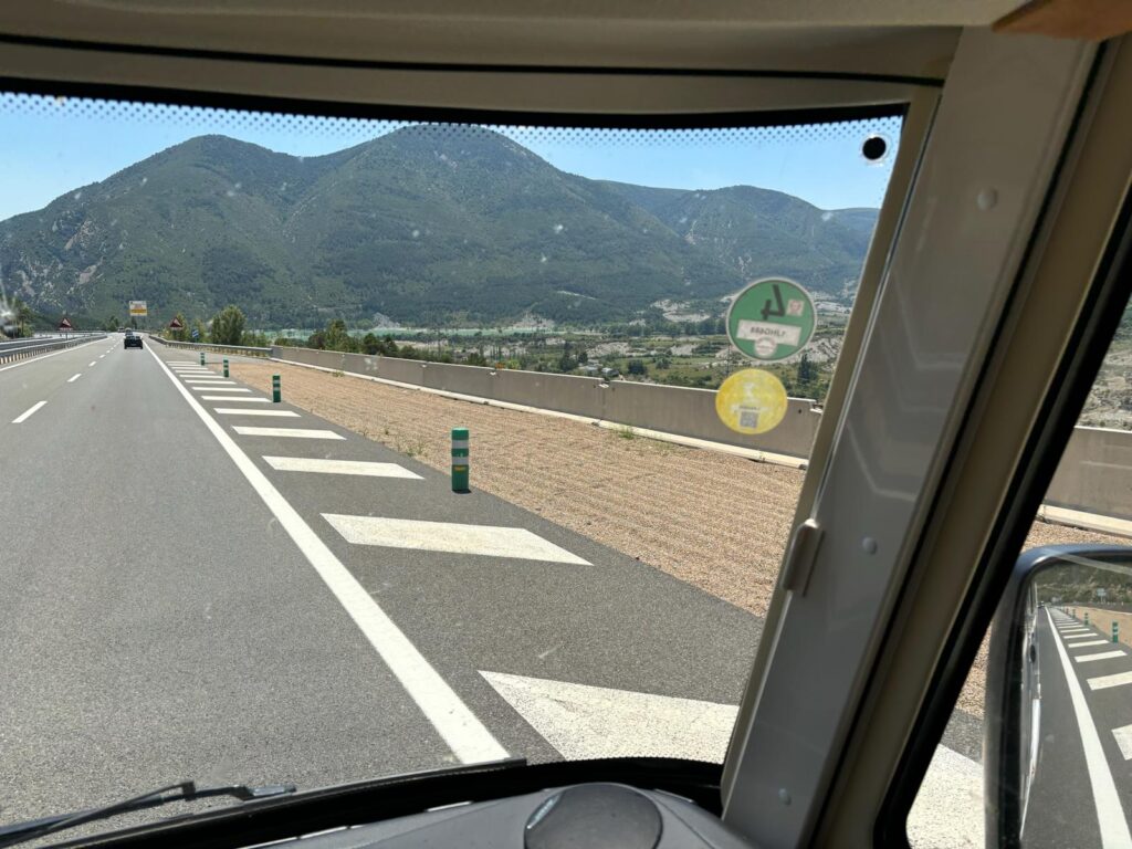 Vandaag stonden 289 kilometer van Lourdes naar Zaragoza op de planning. We aten verse croissants van de camping, struinden eens tussen de mooie vakantiehuisjes op de camping en deden nog een tussenstop aan de Lidl en aan een tankstation. Voor de rest reden we 4,5 uur over deze 289 kilometer. Papa had op voorhand de TomTom GO navigatie-app geïnstalleerd omdat je daar kan navigeren voor vrachtwagen en de afmetingen kan ingeven. Ook al hadden we een gewicht van 7 ton en een lengte van 10m opgegeven, toch leidde TomTom ons naar een k*twegje van 25 kilometer over de Pyreneeën waar max. 3,5 ton toegelaten was.