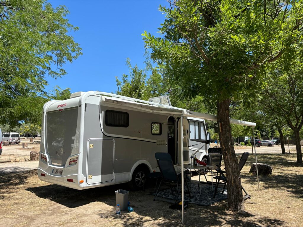 We kamperen op camping Osuna in de rand van Madrid, een drukke maar gezellige camping met kleine plaatsen maar we hebben gelukkig een plekje onder de bomen. Bij een temperatuur van 32 graden en geen wind, is dat geen luxe.