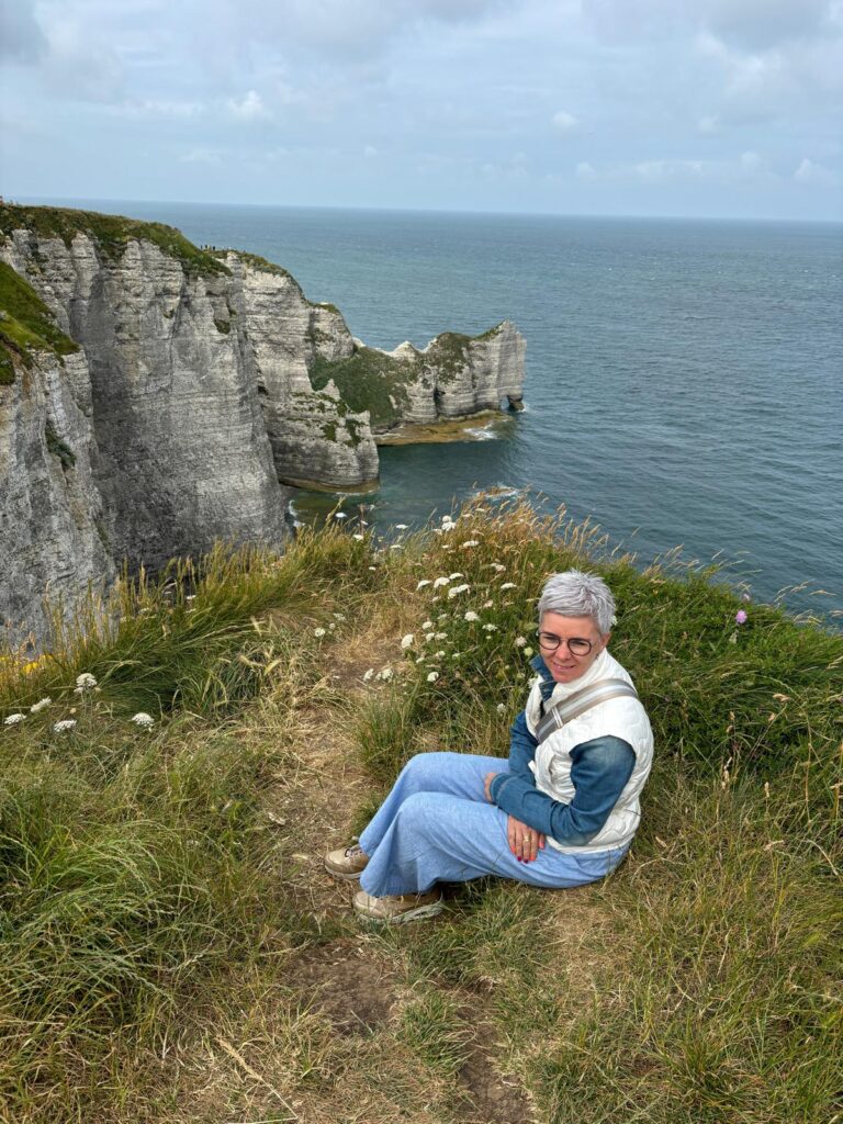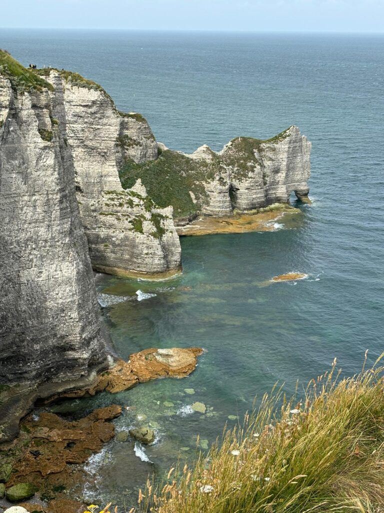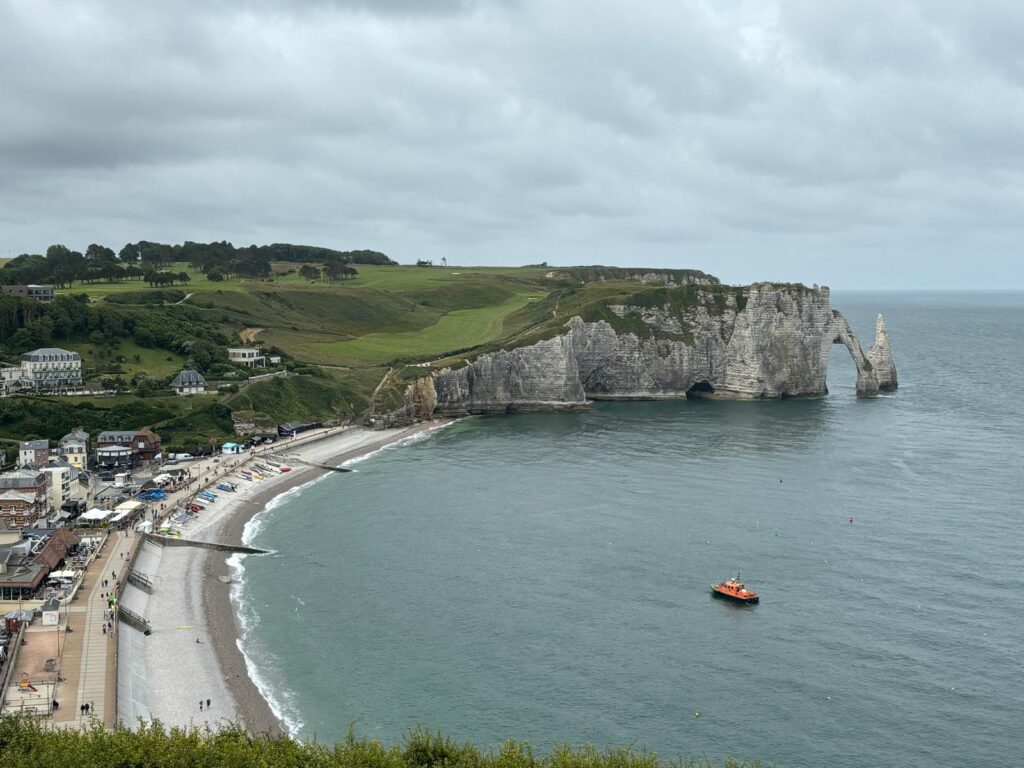 Vandaag sliepen we (weer) lekker uit en aten mama en Ferre verse croissantjes van de bakker. Na het ontbijt reden we naar het centrum en wandelden de krijtrotsen aan de andere kant omhoog. Hier ligt het Notre Dame kapelletje en natuurlijk ook weer enkele mooie rotsformaties. We wandelden een eindje langs het kustpad en mama en Ferre wandelden ook nog een stukje naar beneden richting het strand. Papa moest passen omwille van een pijnlijk rechterbeen, nog een aandenken aan Levensloop in Neeroeteren.