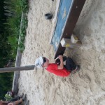 Ferre heeft zich de hele namiddag kunnen uitleven terwijl mama en papa van de zon konden genieten. Er werd niet op een beetje water of modder gekeken.